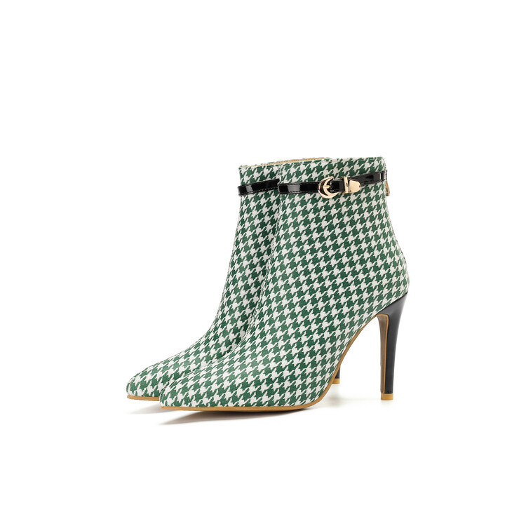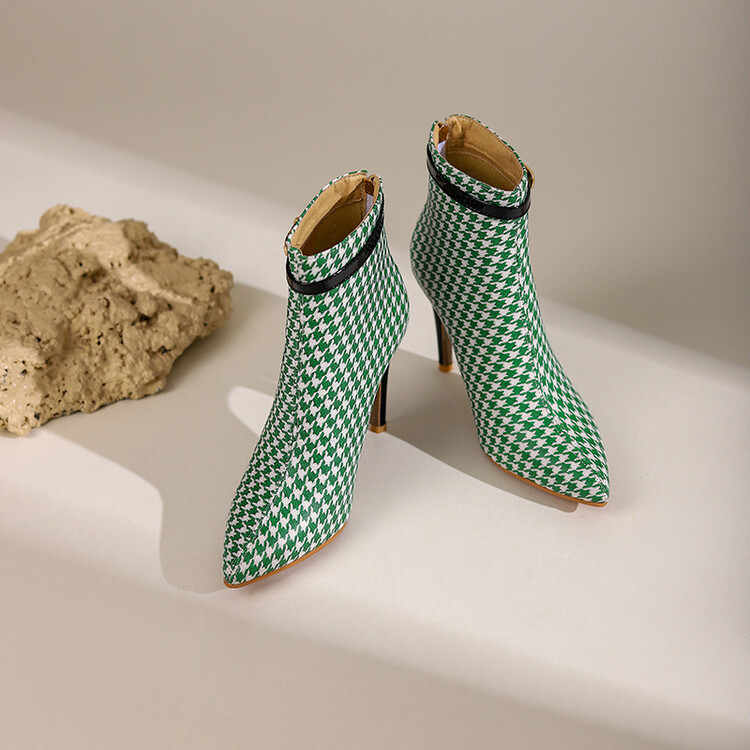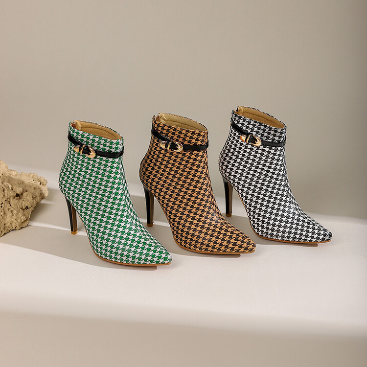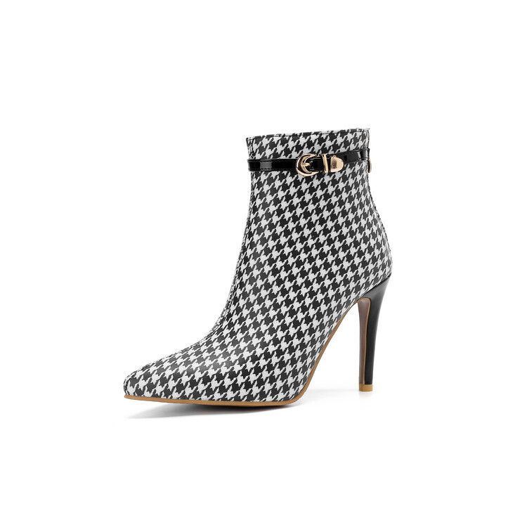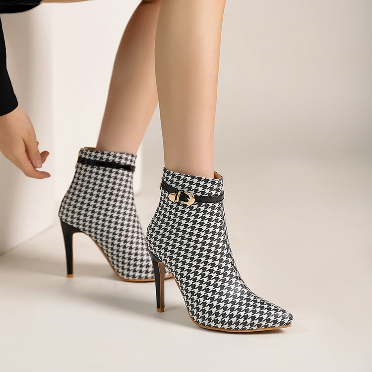 Houndstooth Fashion Boots with Side Zipper and Small Heel